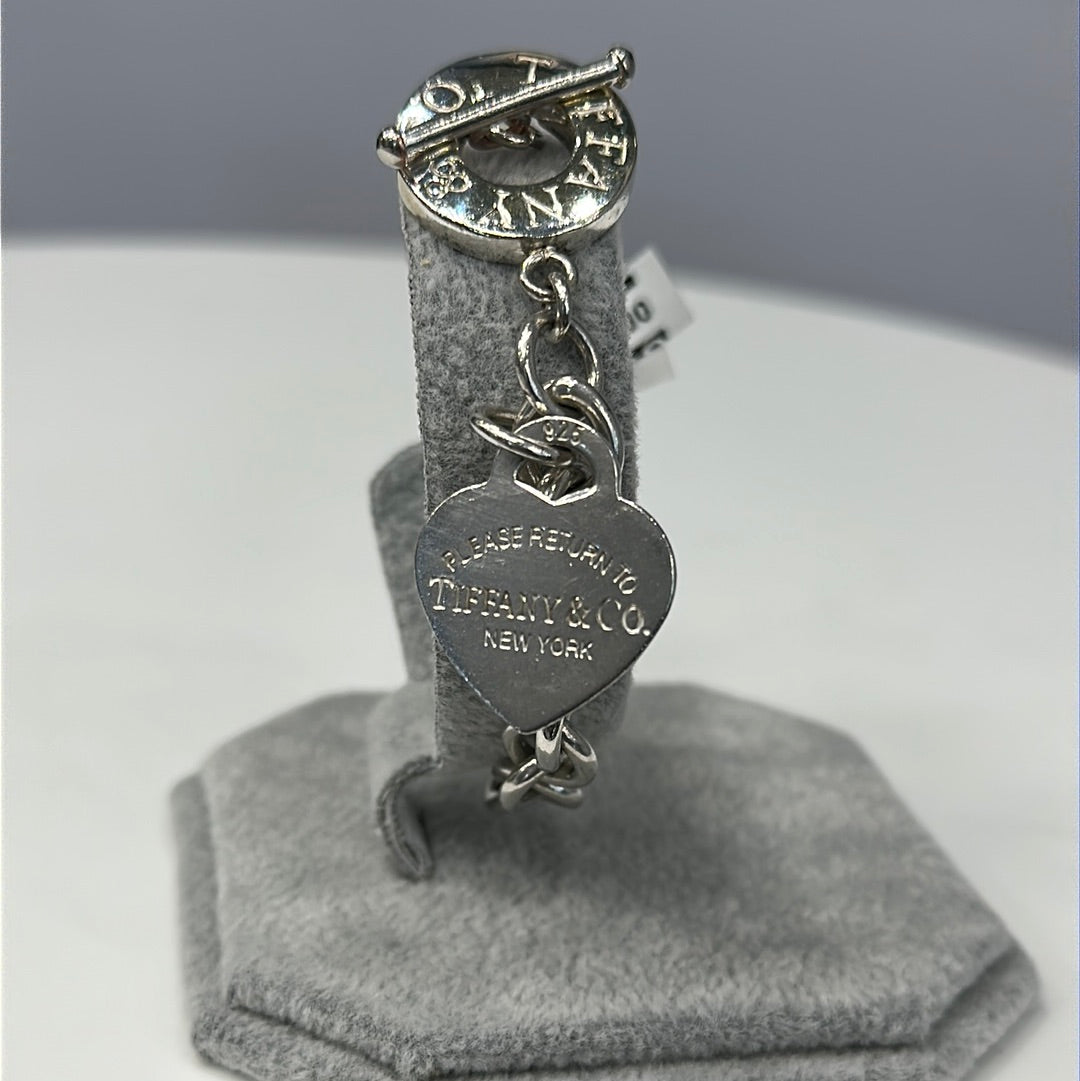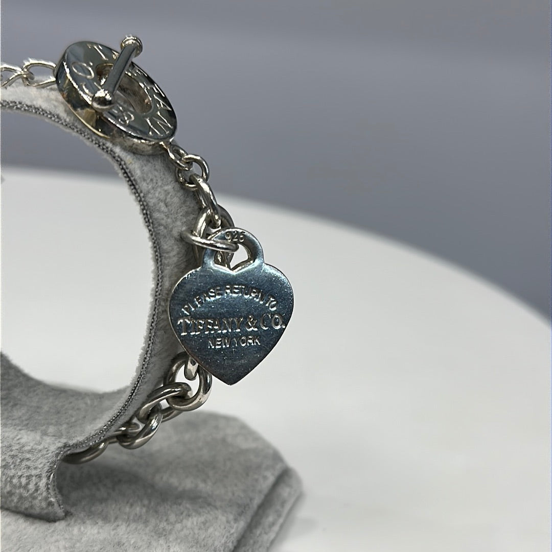 Tiffany & Co charm bracelet features a distinctive heart-shaped tag with a bold toggle fastening. Inspired by the iconic keyring first introduced in 1969, the Return to Tiffany collection is a classic reinvented. Wear yours stacked with other sterling silver designs.