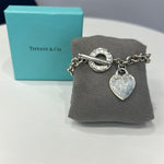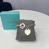 Introducing the Tiffany & Co. Return to Tiffany® Heart Tag Bracelet, a timeless piece that embodies the brand's legacy of elegance and craftsmanship. Inspired by the iconic key ring first introduced in 1969, this bracelet features a medium-sized heart-shaped tag engraved with the signature "Please Return to Tiffany & Co." message. Crafted from sterling silver, the bracelet measures 7.5 inches in length, offering a comfortable fit for most wrists. The classic design and enduring appeal make it a cherished addition to any jewellery collection.