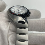 Materials & Design: Crafted from durable stainless steel, the watch features an distinctive and asymmetrical case that sets it apart from conventional timepieces. The white dial is complemented by silver-tone and red hands - ensuring clear readability.