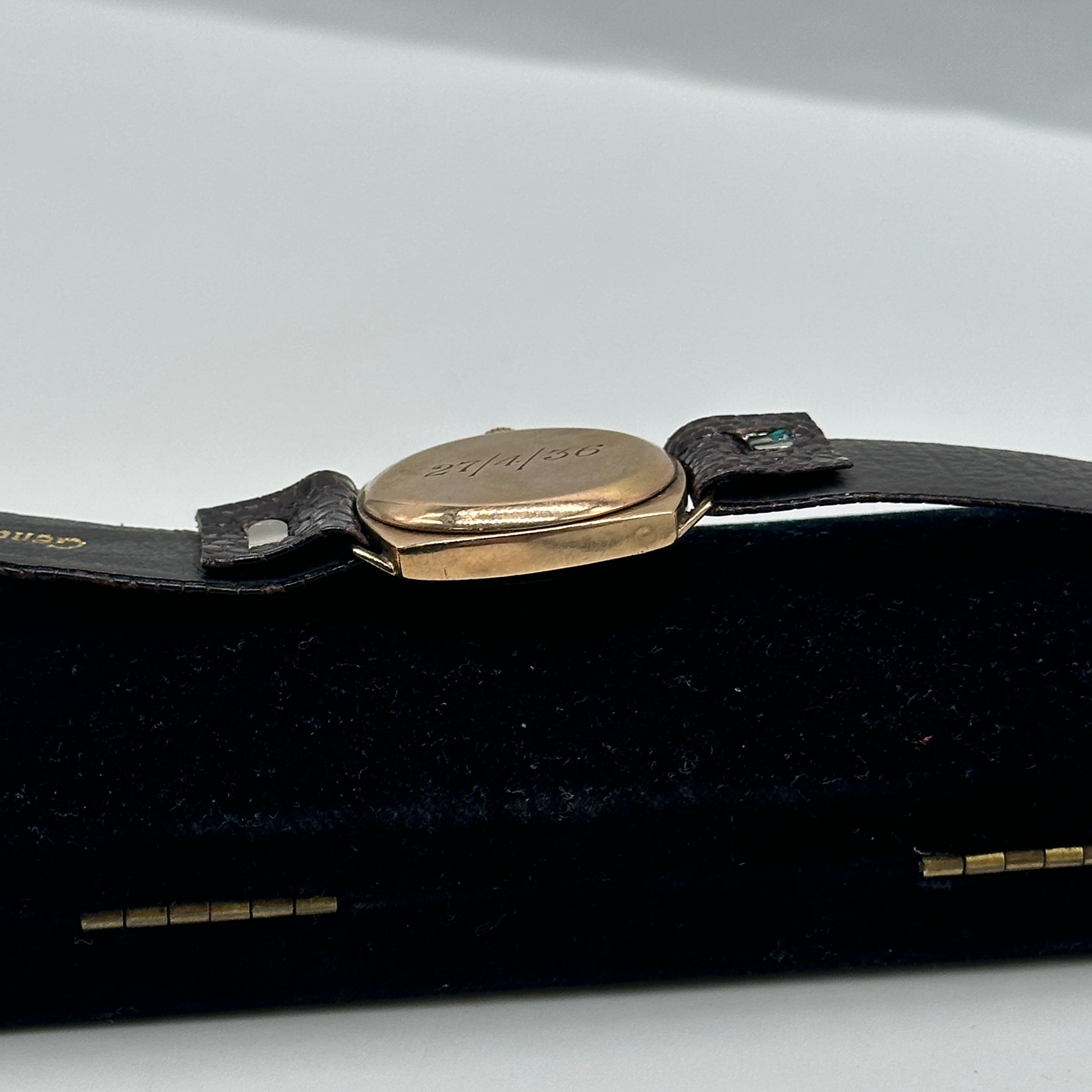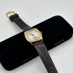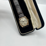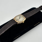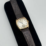 Fitted with a sleek, period-appropriate brown lizard leather strap and a gold tone buckle, this watch offers both comfort and style. The manual winding movement speaks to the era’s precision engineering, making it an ideal choice for collectors or anyone with an appreciation for vintage timepieces.