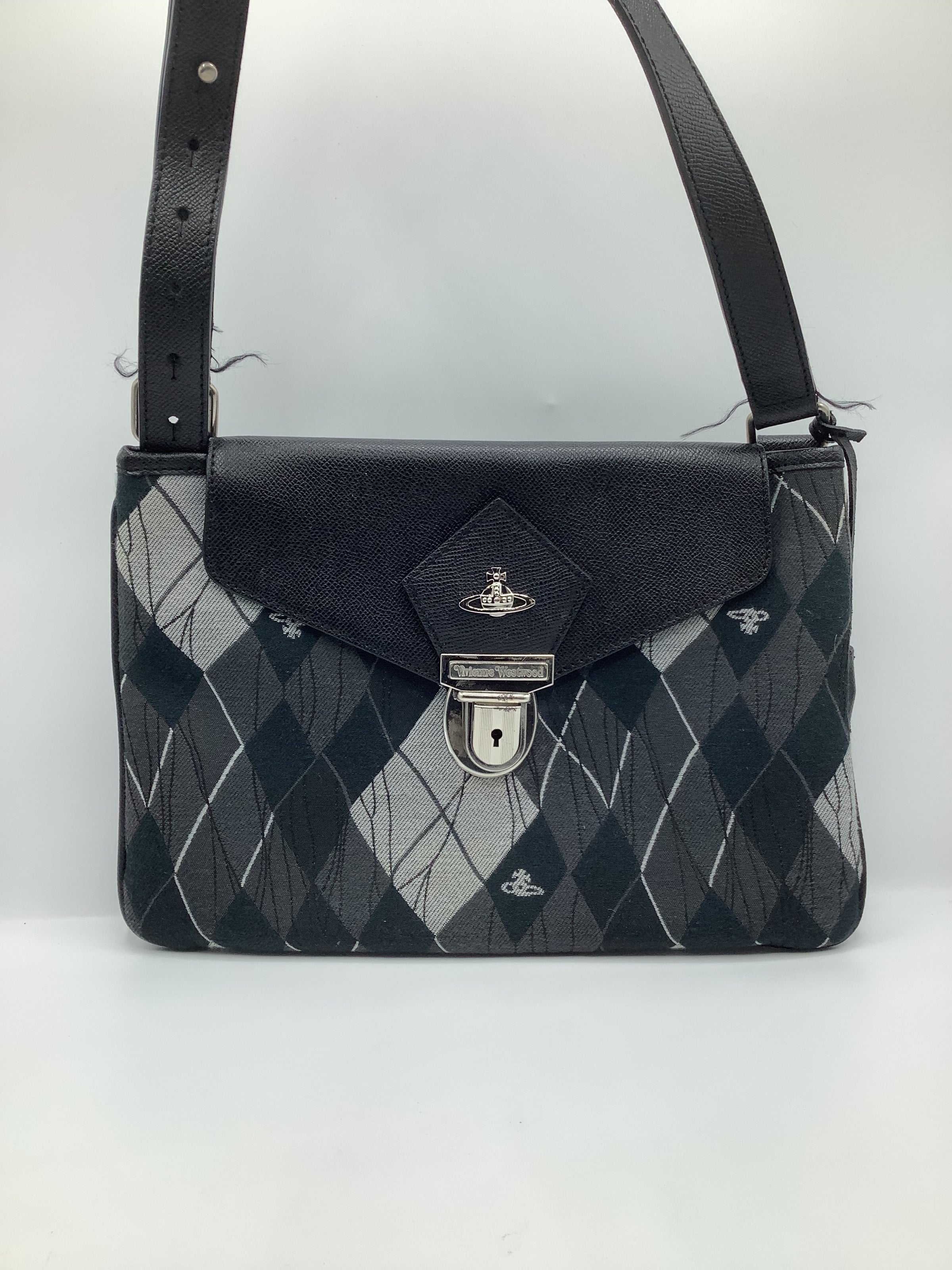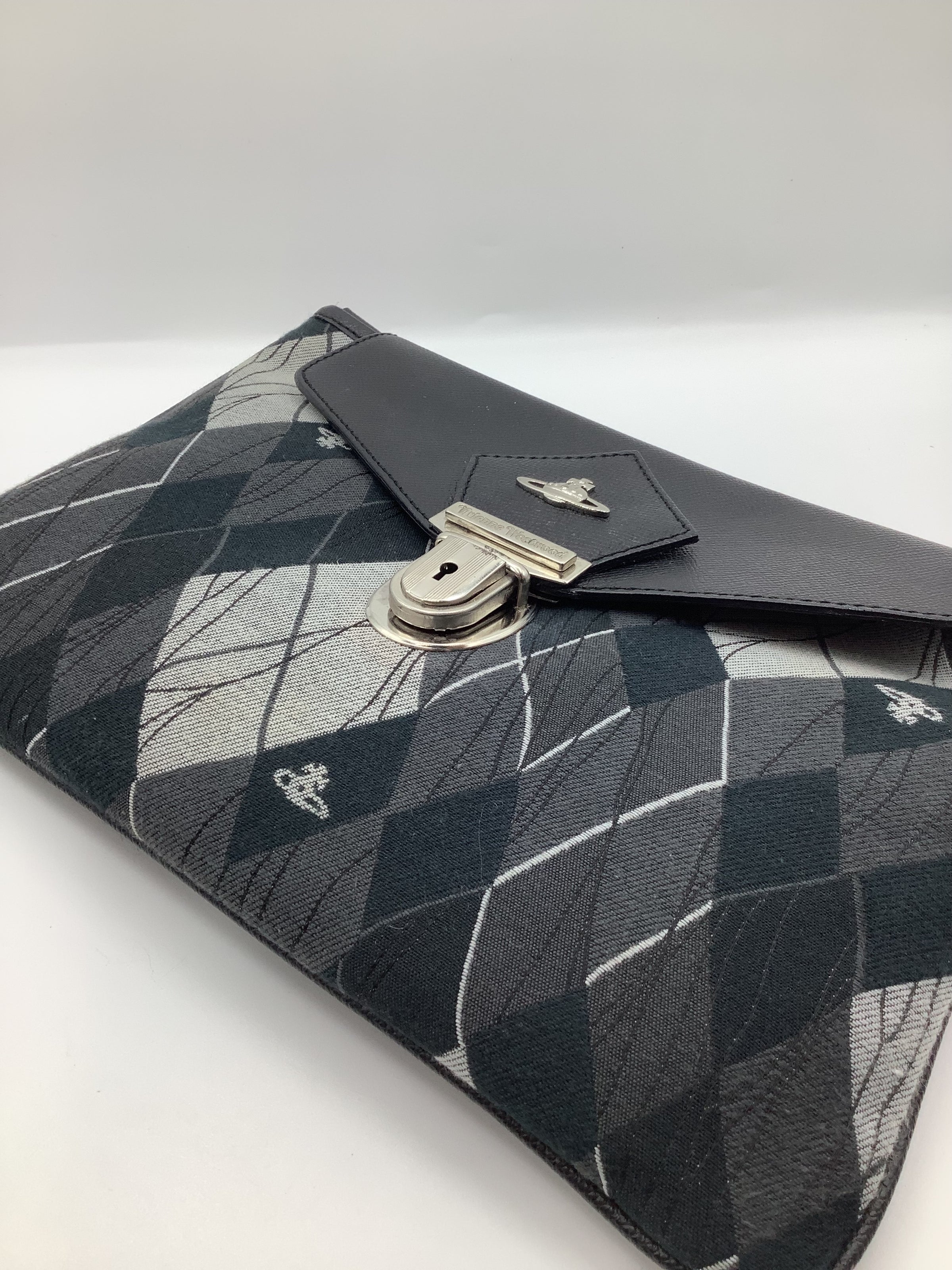Vivienne Westwood Envelope Clutch with Crossbody Strap – Grey Checkerboard Pattern