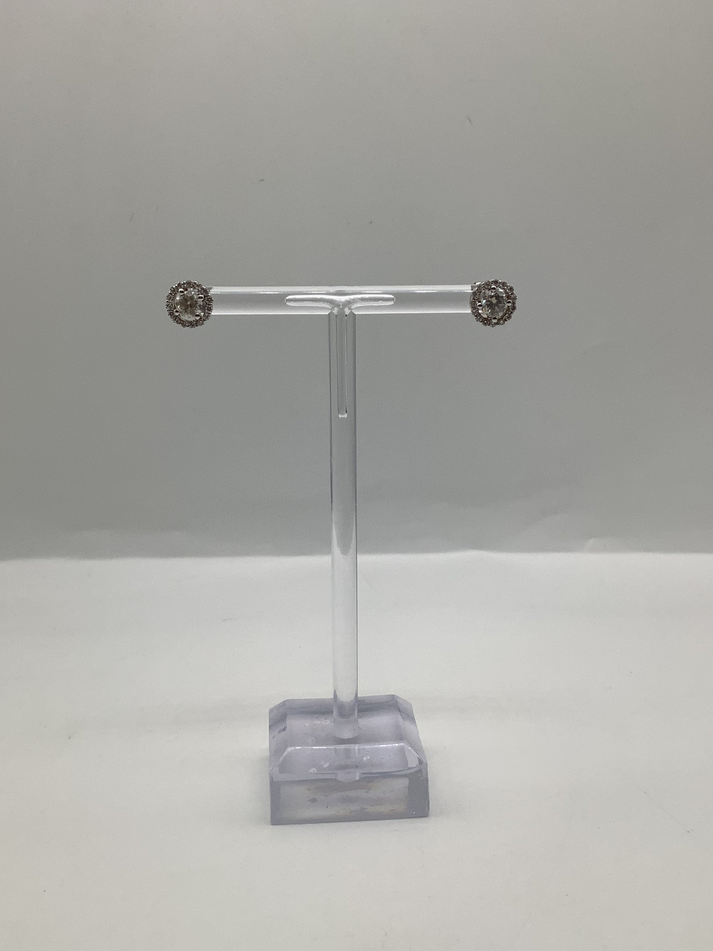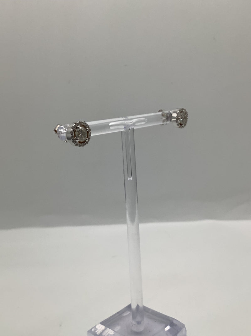 Beautiful Diamond Solitaire Studs with a Halo of diamonds around each central stone set in stunning 14ct White Gold in a 4 claw Setting.