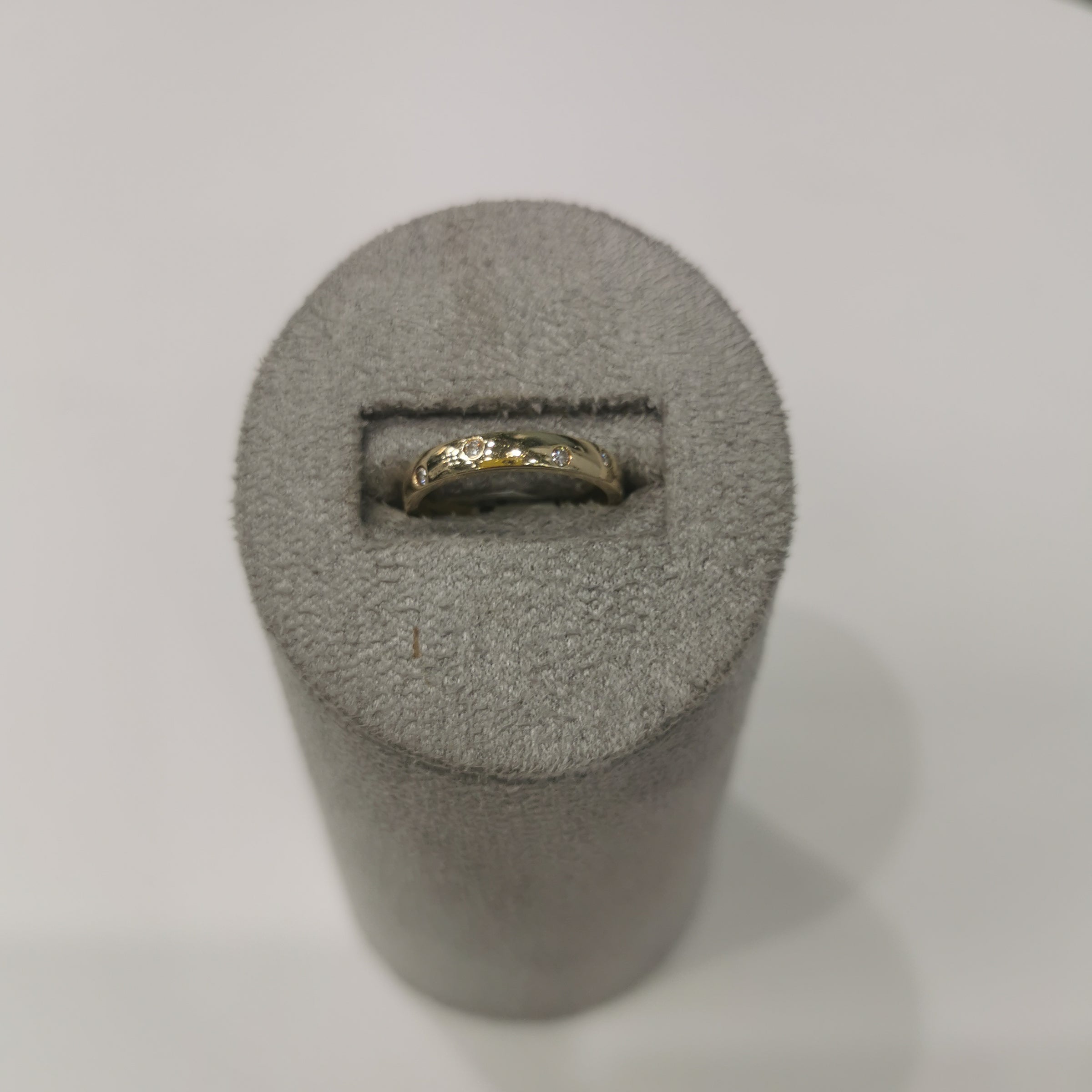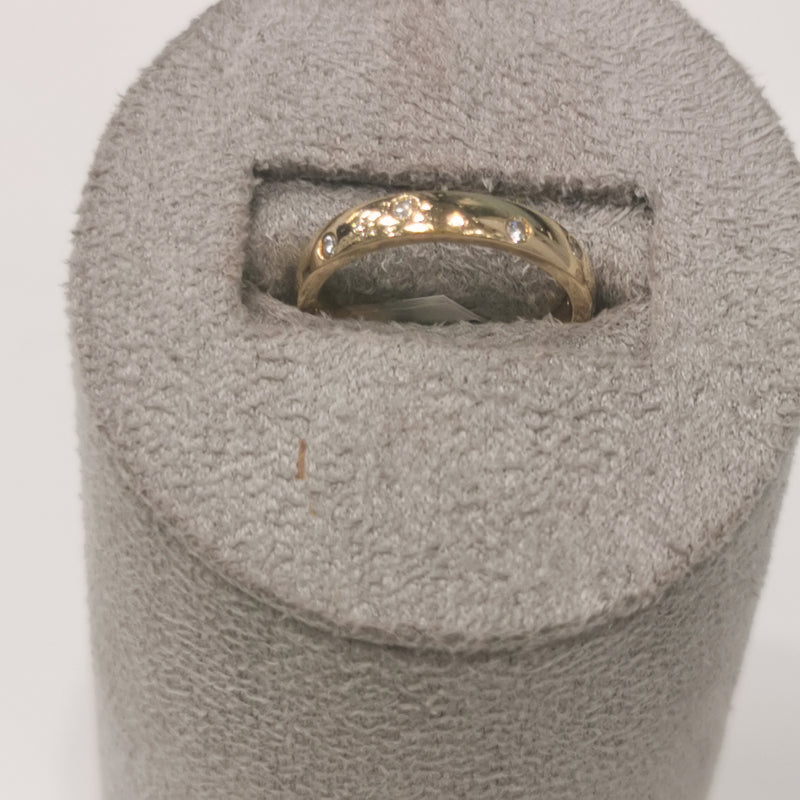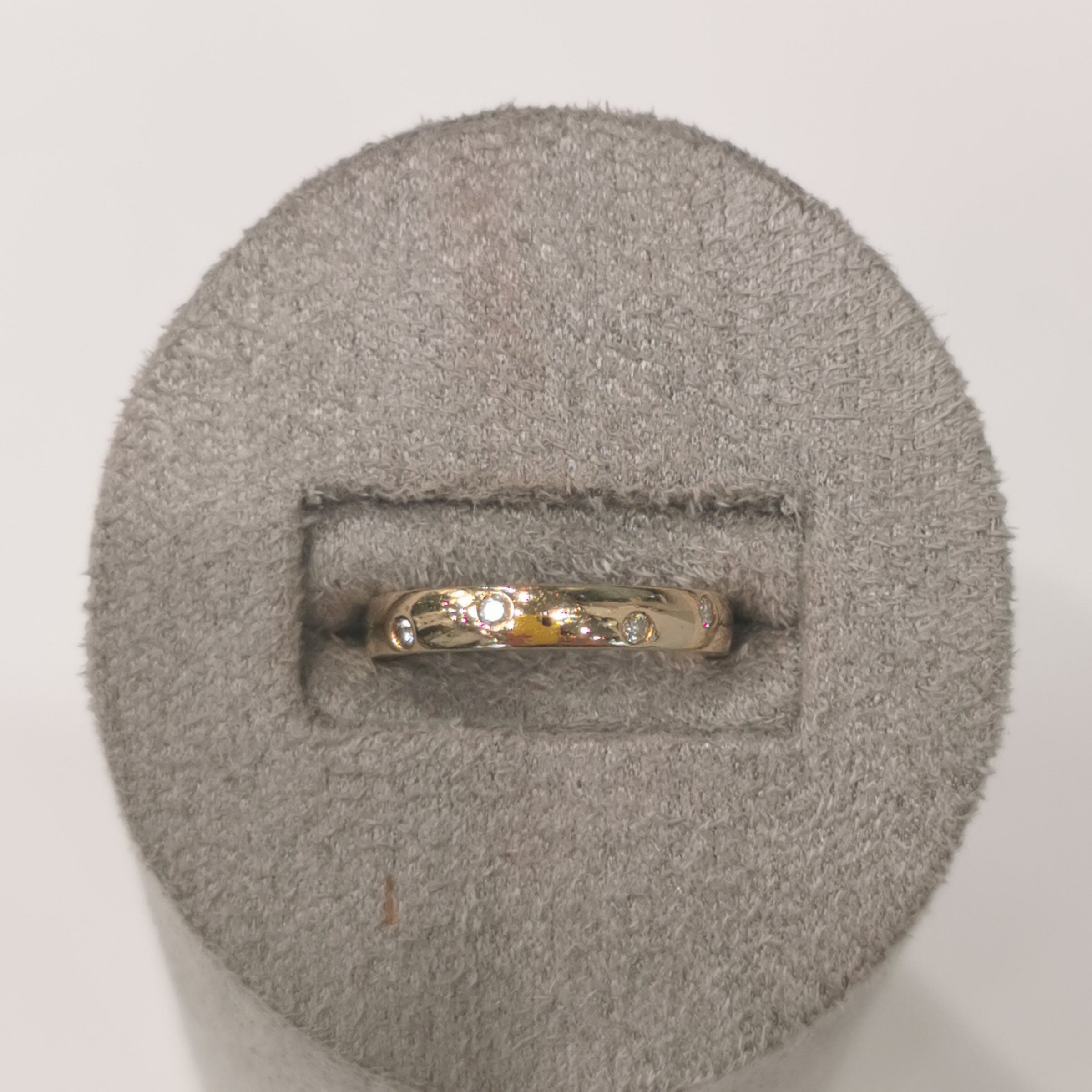 18ct Yellow Hand-made Diamond Set Wedding Band, Court Fit Band Set With Small Brilliant Cut Diamonds Scattered Around The Band