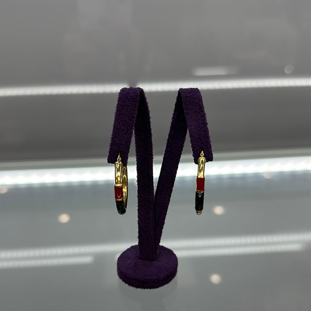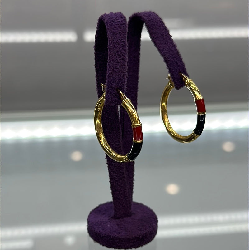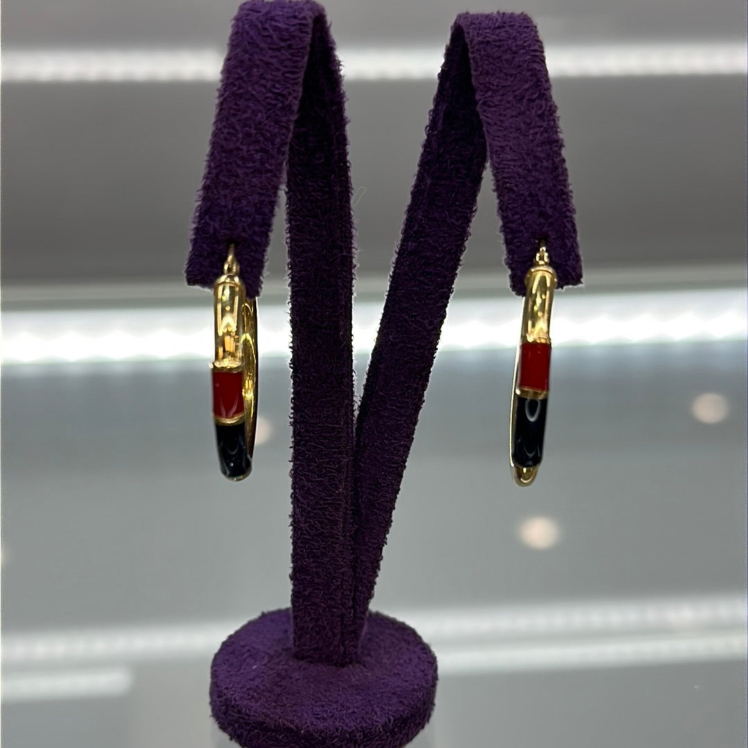 Stunning 18ctYellow Gold Hoop Earring With Blue And Red Enamel On The front Section Of The Earring.